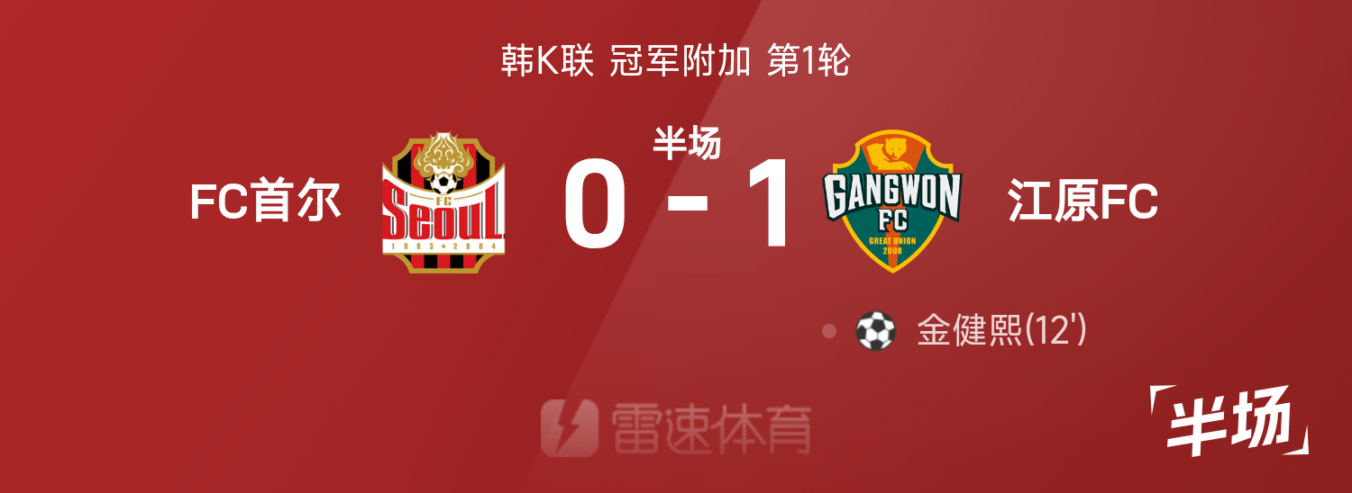 Mi-temps de la K-League coréenne: Kim Gun-hee a marqué avec un balayage, Gangwon temporairement 1-0 à Séoul
