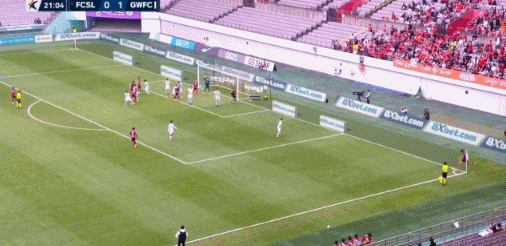 22' Li Shengmo a débordé le but et a frappé le but avec sa tête, et le ballon a été directement dévié