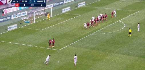 45+3' Gangwon a tiré le coup franc dans la zone des trois secondes, mais Li Sangxian n'a pas réussi à constituer une menace.