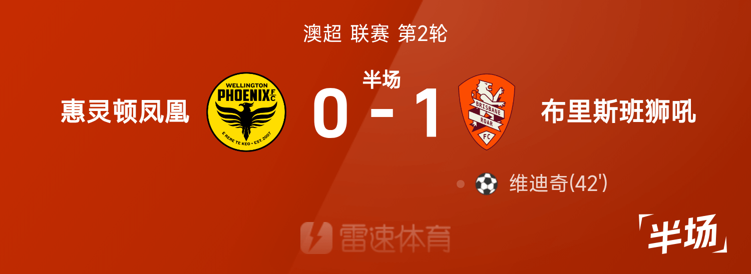 Mi-temps de la A-League : Vidic contre-attaque et marque, Wellington Phoenix temporairement 0-1 Brisbane Roar