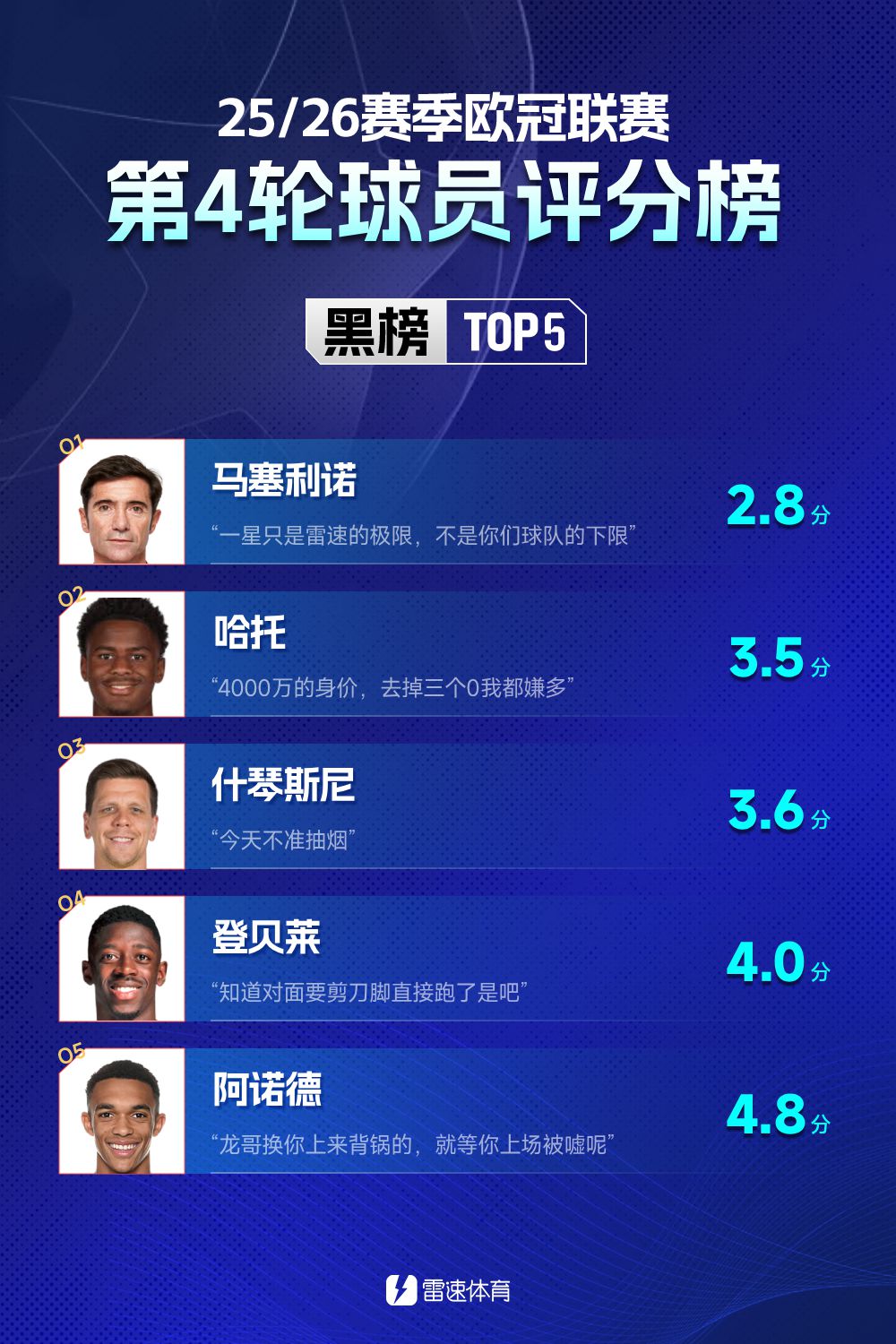 Le défenseur de Chelsea Hatto a fait deux cadeaux, permettant à Chelsea de ramener seulement 1 point contre l'équipe azerbaïdjanaise ; Szczesny se trouvait dans une situation similaire. Lorsqu'il n'a rien fait dans le jeu, il a failli donner une dernière chance à son adversaire, et tous deux sont entrés sur la liste noire.