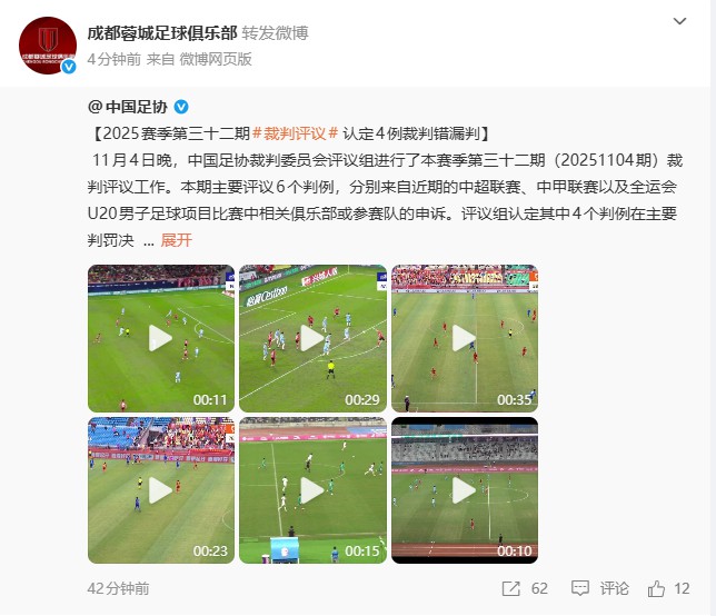 Par la suite, le responsable Weibo de Chengdu Chengdu a transmis ce commentaire émis par la Fédération chinoise de football.