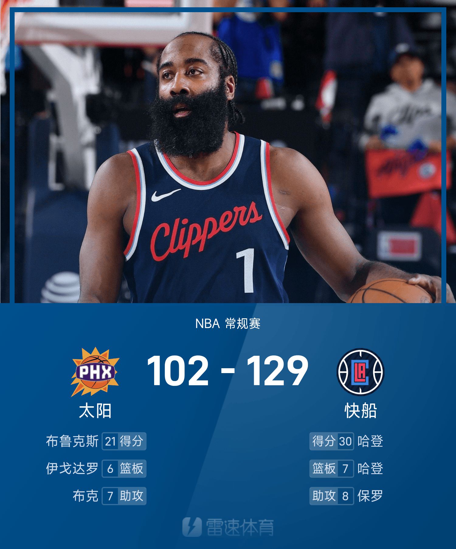 Rapport NBA : Harden a 30 points, 7 rebonds et 7 passes décisives, les Clippers ont battu les Suns 129-102