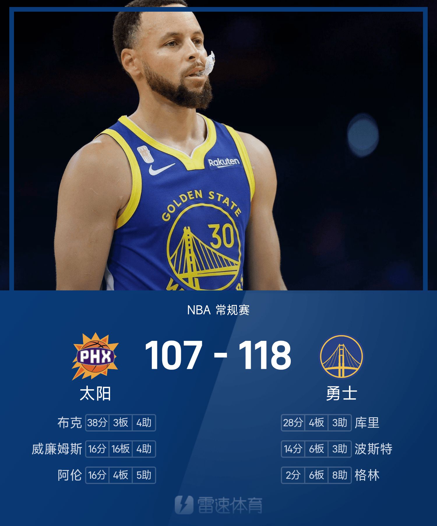 Rapport de match NBA : Curry a marqué 28 points, Booker a marqué 38 points et les Warriors ont battu les Suns 118-107