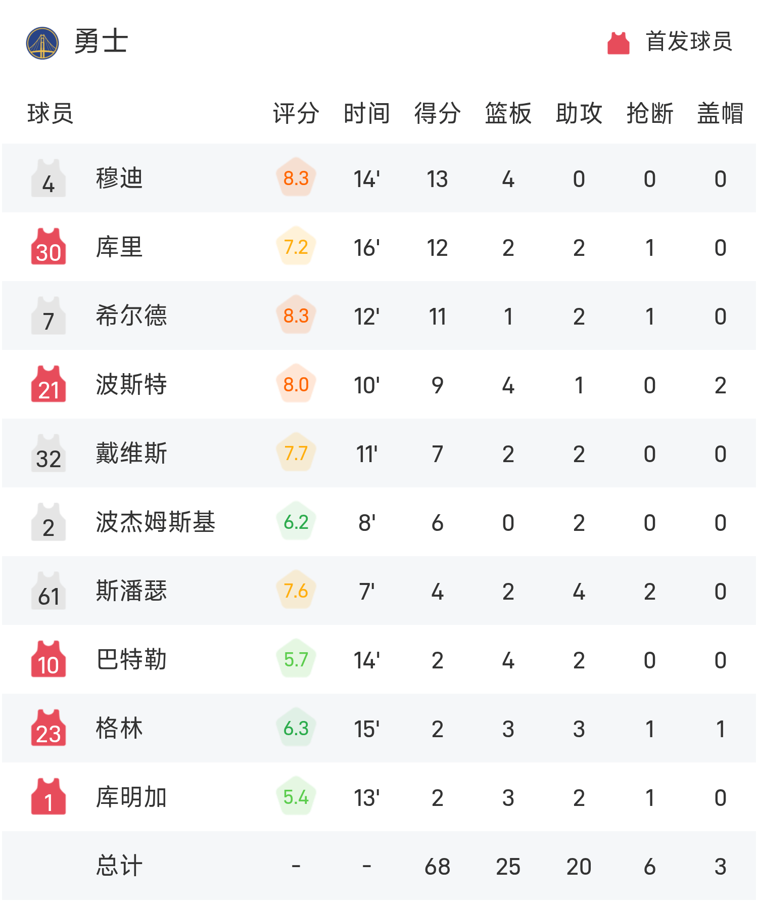 Mi-temps NBA : Moody a marqué 13 points, les Warriors ont marqué 10 points et les Warriors ont mené les Suns en 68-49.