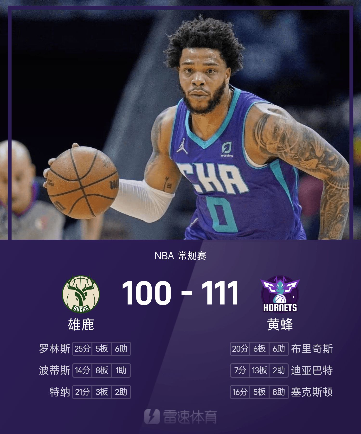 En fin de match, les Hornets ont battu les Bucks 111-100.