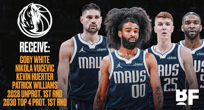 Les Mavericks de Dallas recevront des choix indispensables au repêchage, ainsi que Vucevic, Huerter et Coby White - les trois joueurs sont dans la saison de contrat qui arrive à expiration.