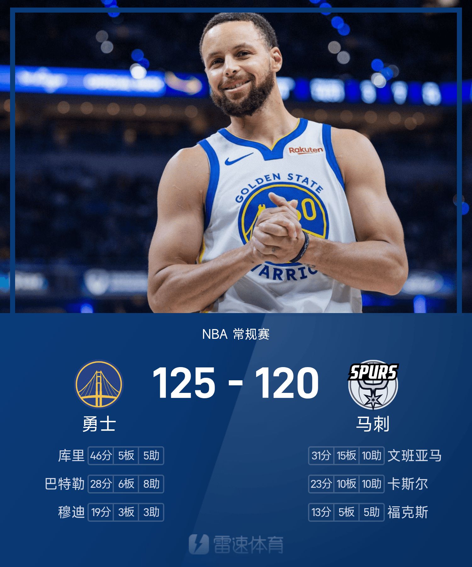 Rapport de bataille NBA : Curry marque 46 points, Wenban marque un triple-double, Warriors 125-120 Spurs