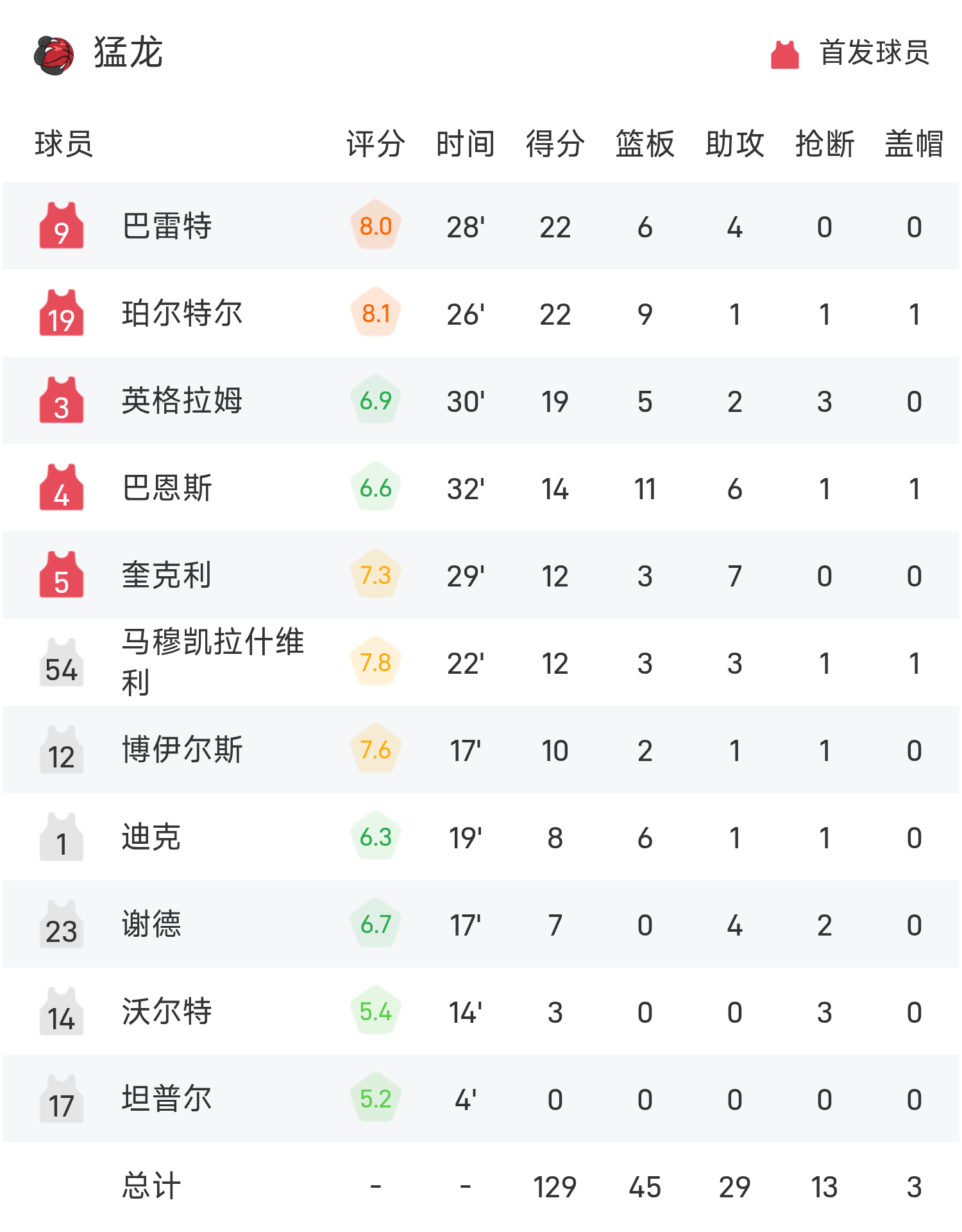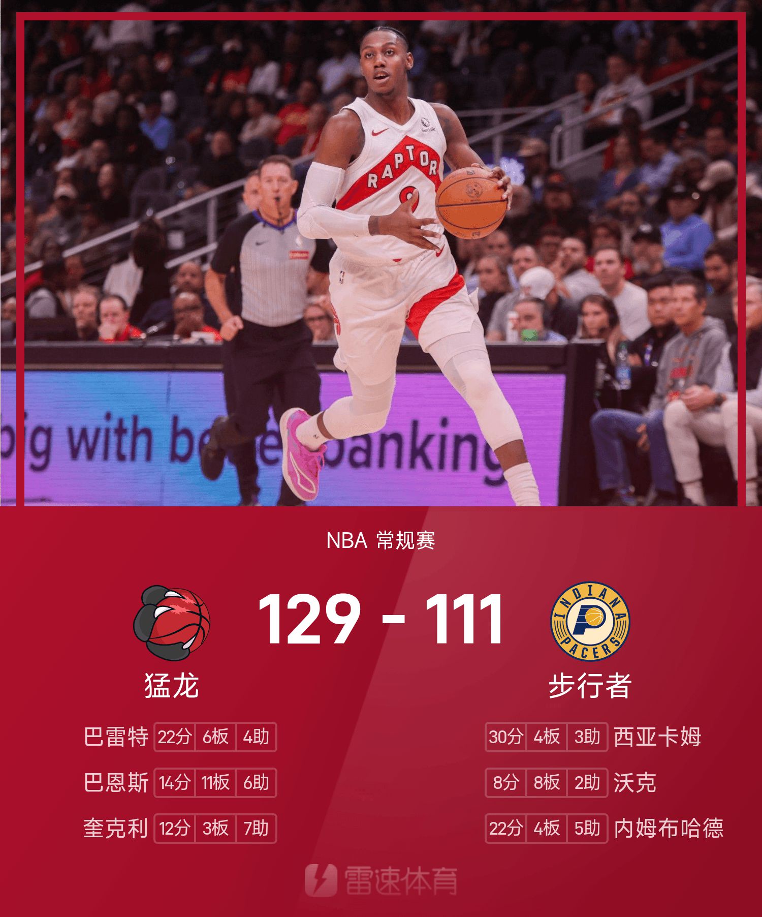 Barrett a marqué 22 points, 6 rebonds et 4 passes décisives pour mener l'équipe à la victoire. Siakam a marqué un record de 30 points, 4 rebonds et 3 passes décisives.