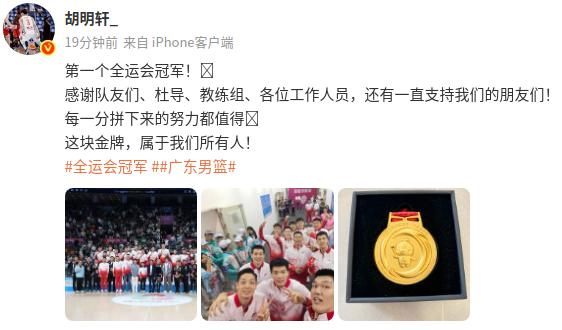 6686 Sports News le 13 novembre Lors de la finale de basket-ball masculin des Jeux nationaux, l'équipe du Guangdong a battu l'équipe du Zhejiang et a remporté le championnat. Après le match, Hu Mingxuan a posté sur les réseaux sociaux pour partager ses réflexions.