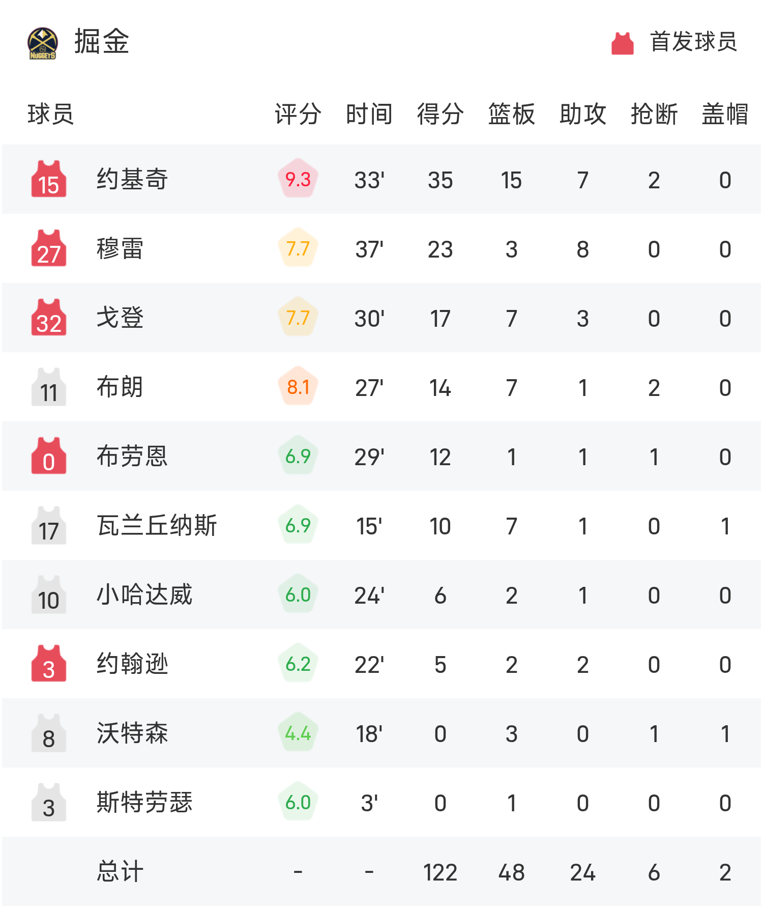 Rapport du match NBA : Jokic a récolté 35 points, 15 rebonds et 7 passes décisives, les Nuggets ont battu les Kings 122-108