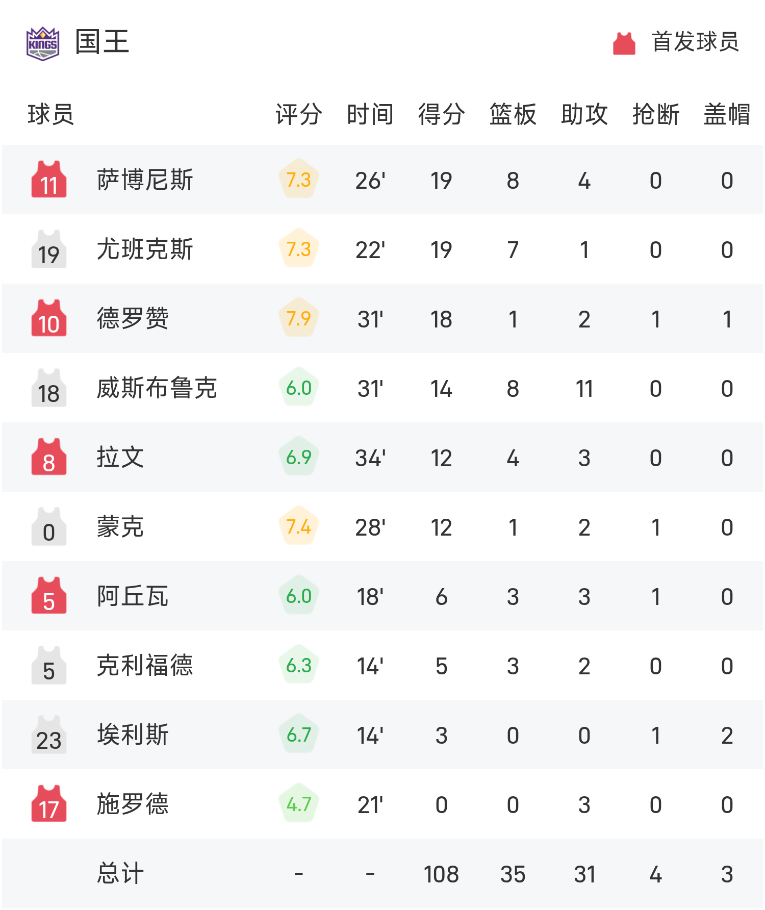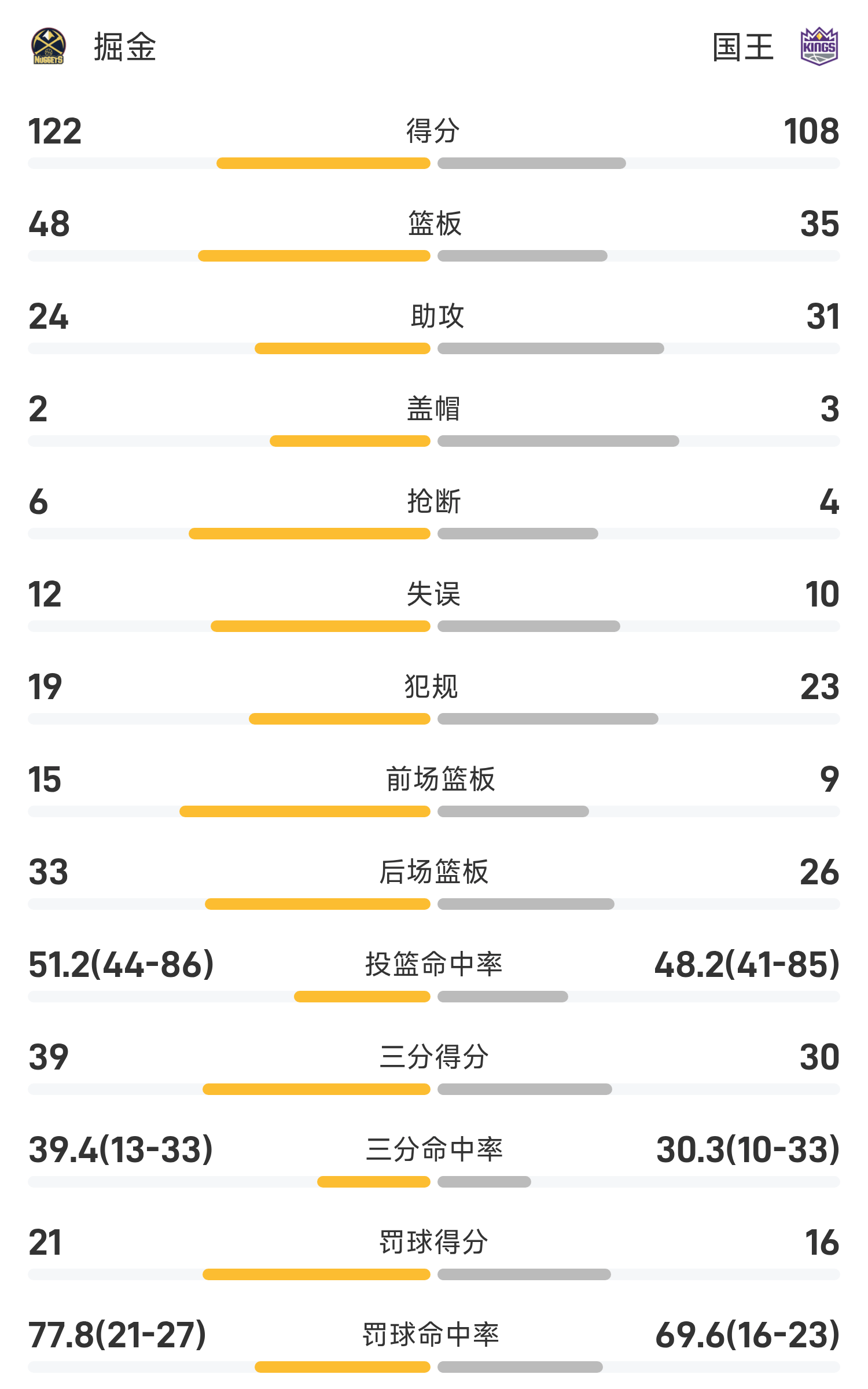 En fin de match, les Kings ont perdu contre les Nuggets 108-122.