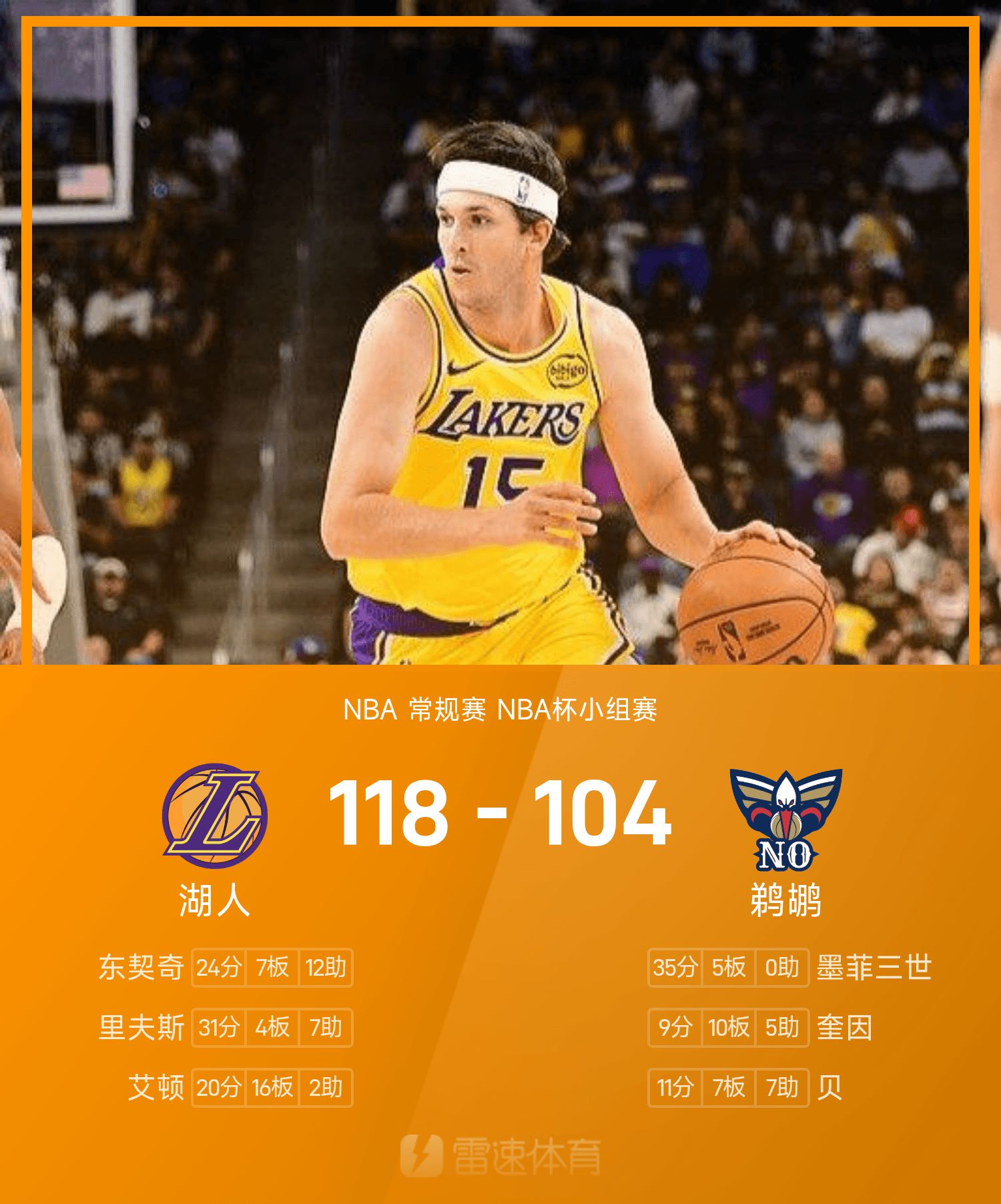 Rapport de la Coupe NBA: Reeves 31 points et 7 passes décisives, les Lakers battent les Pélicans 118-104