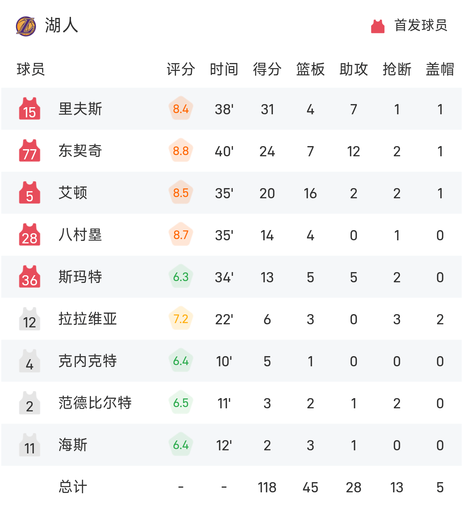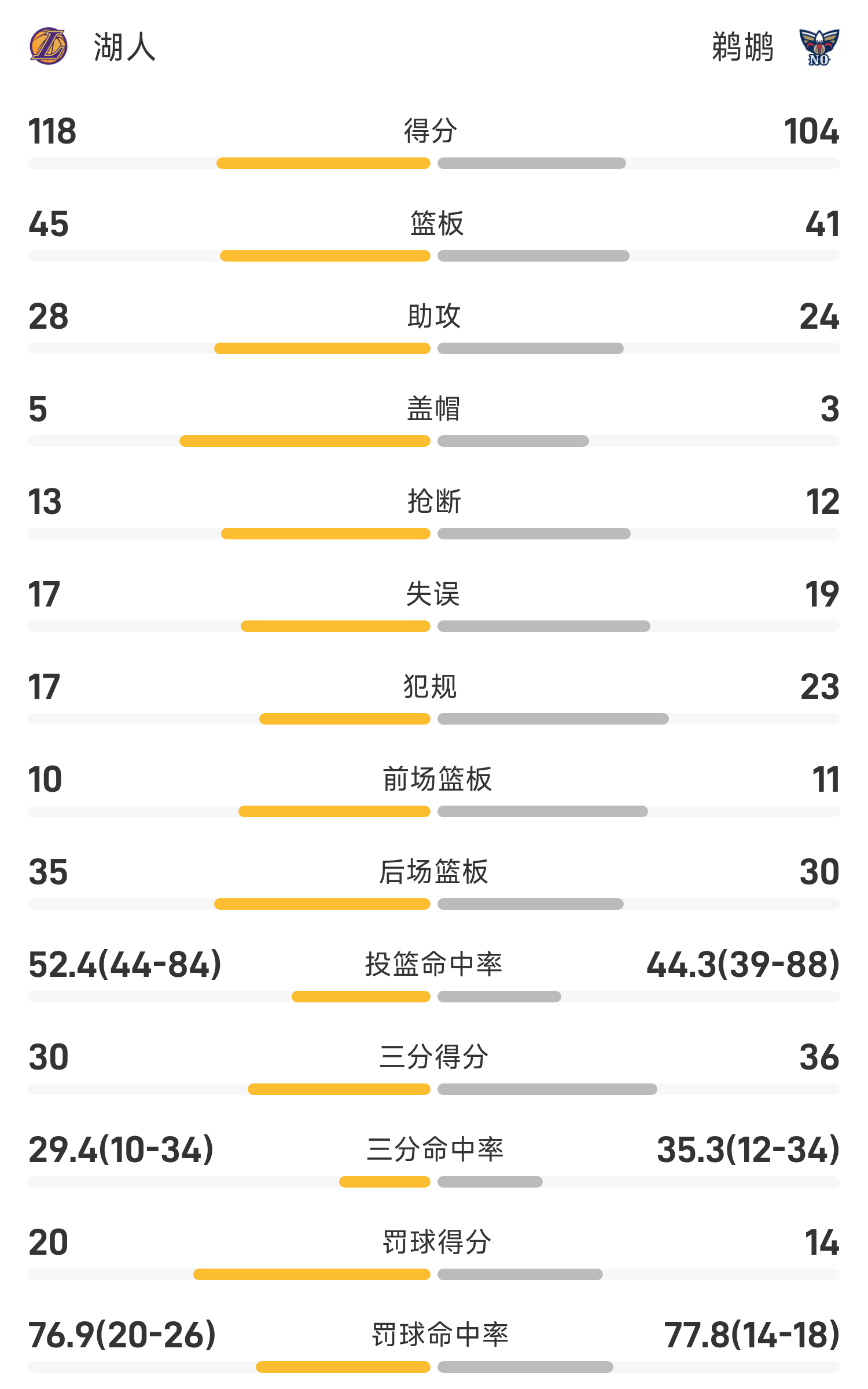 En fin de match, les Pélicans ont perdu contre les Lakers 104-118.