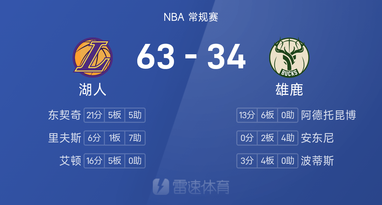 Les deux équipes sont actuellement à la mi-temps, les Bucks 34-63 et les Lakers étant menés de 29 points.