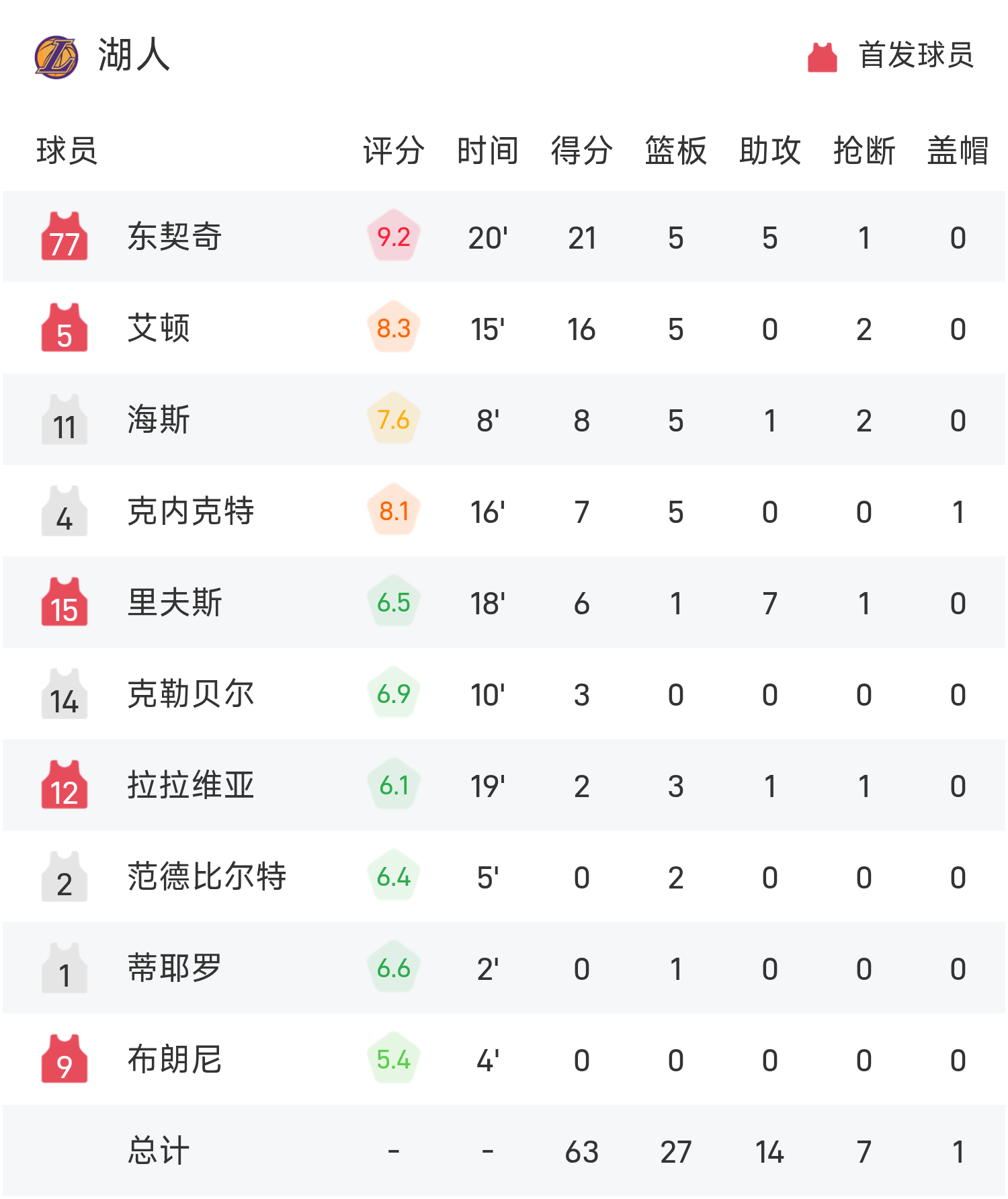 Doncic a marqué un record de 21 points, 5 rebonds et 5 passes décisives, Antetokounmpo a eu 14 points et 5 erreurs, et Kuzma a réalisé 0 tir sur 6 et n'a marqué qu'un point.