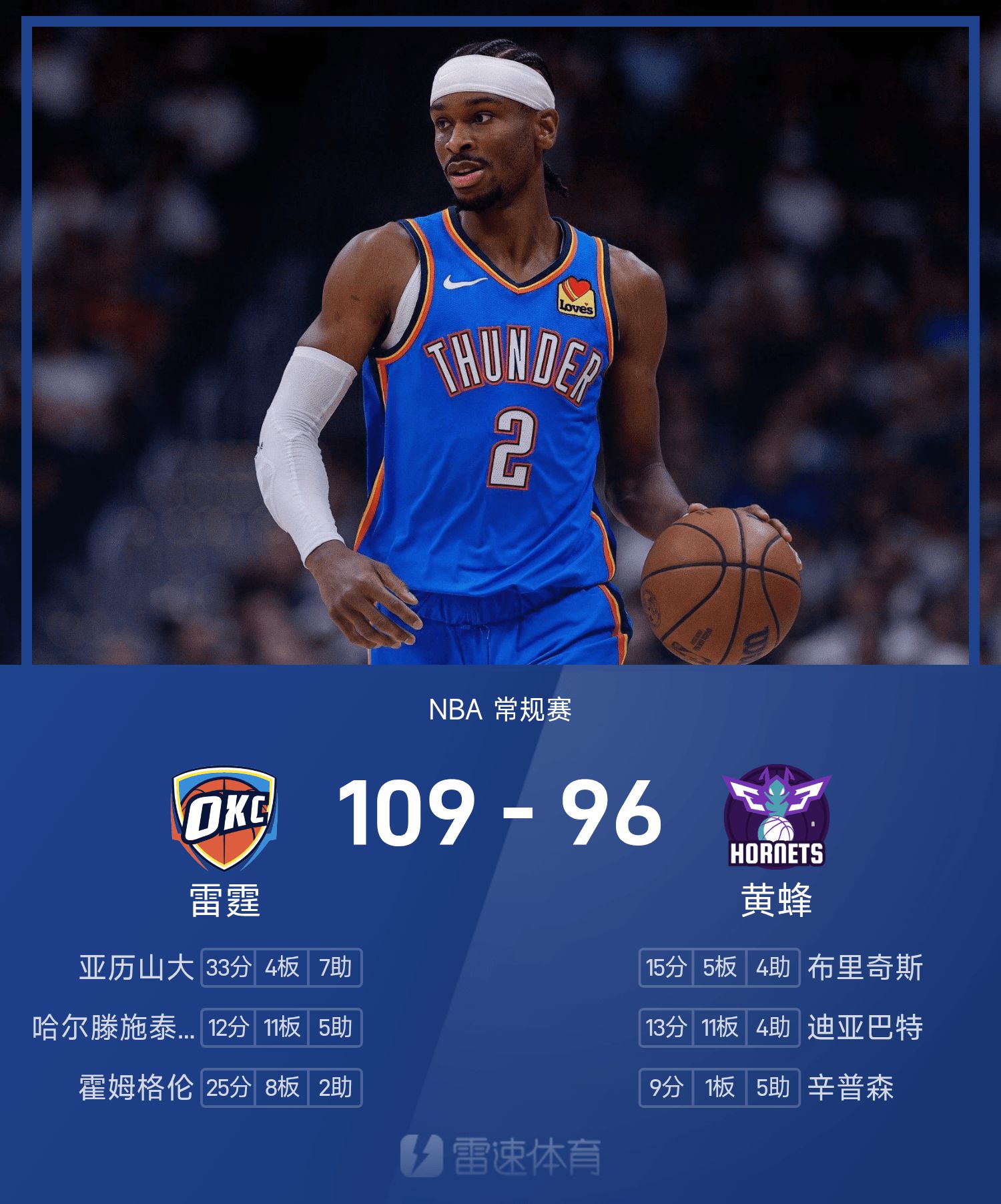 Rapport NBA : Alexander a 33 points et 7 passes décisives, Thunder a battu les Hornets 109-96