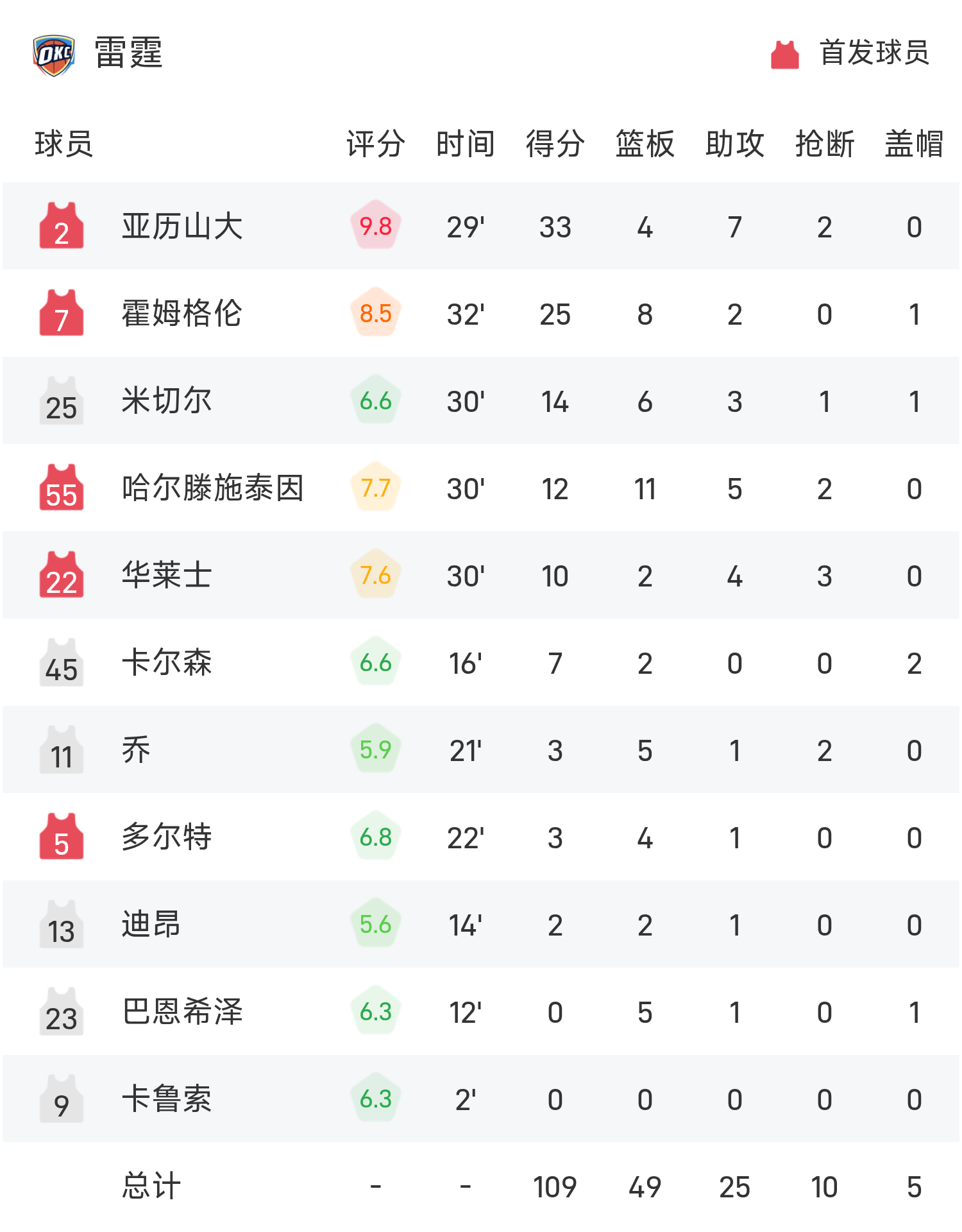 Alexander a marqué un record de 33 points, 4 rebonds et 7 passes décisives, menant le Thunder à la victoire.