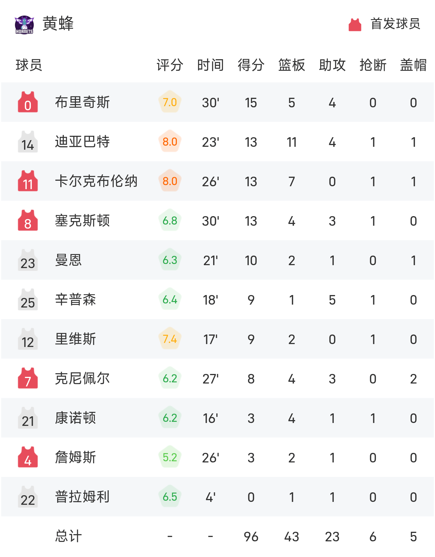 En fin de match, les Hornets ont perdu contre le Thunder 96-109.