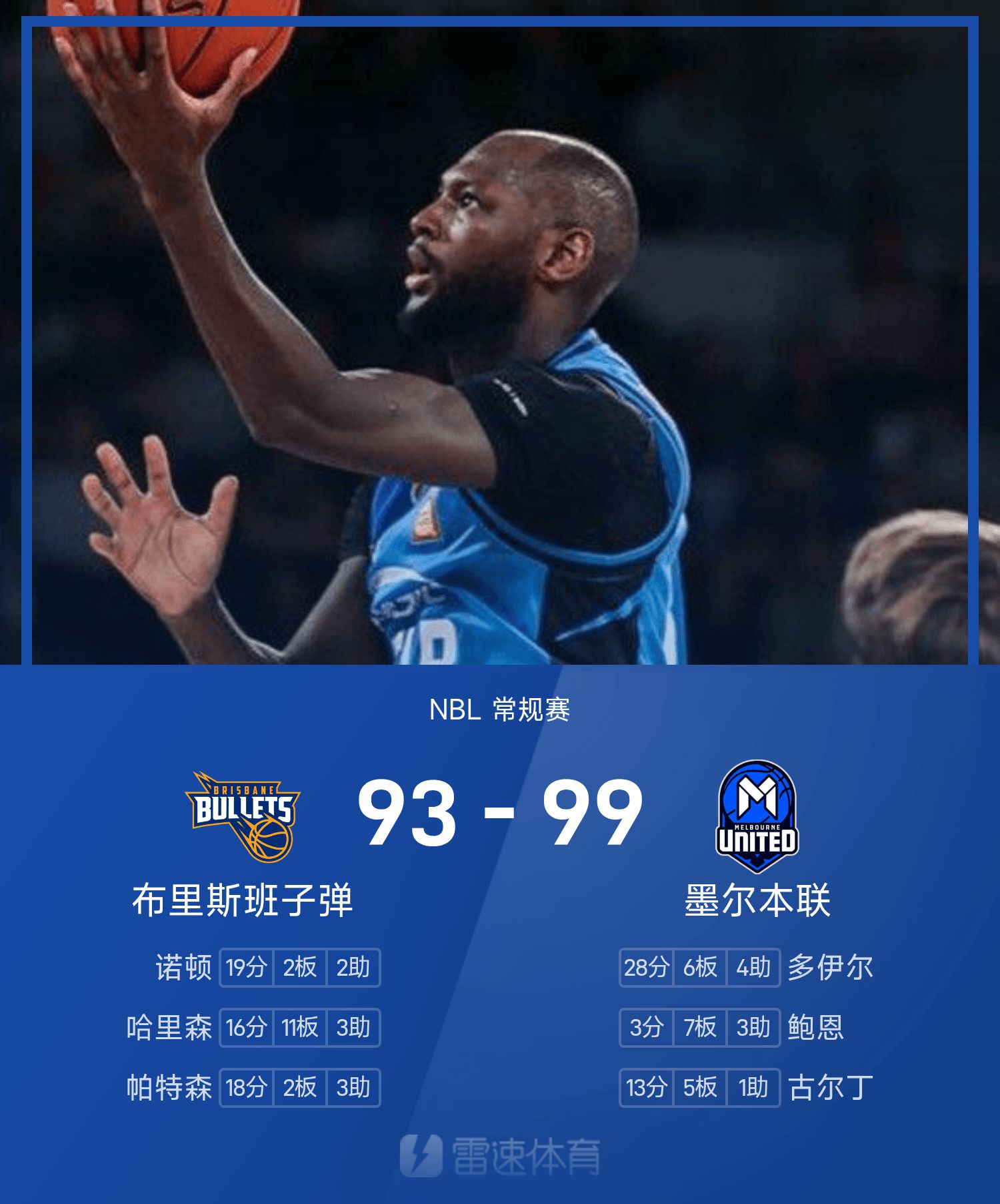 Rapport de bataille NBL : Doyle 28 points et 6 rebonds, Melbourne United a battu les Brisbane Bullets 99-93