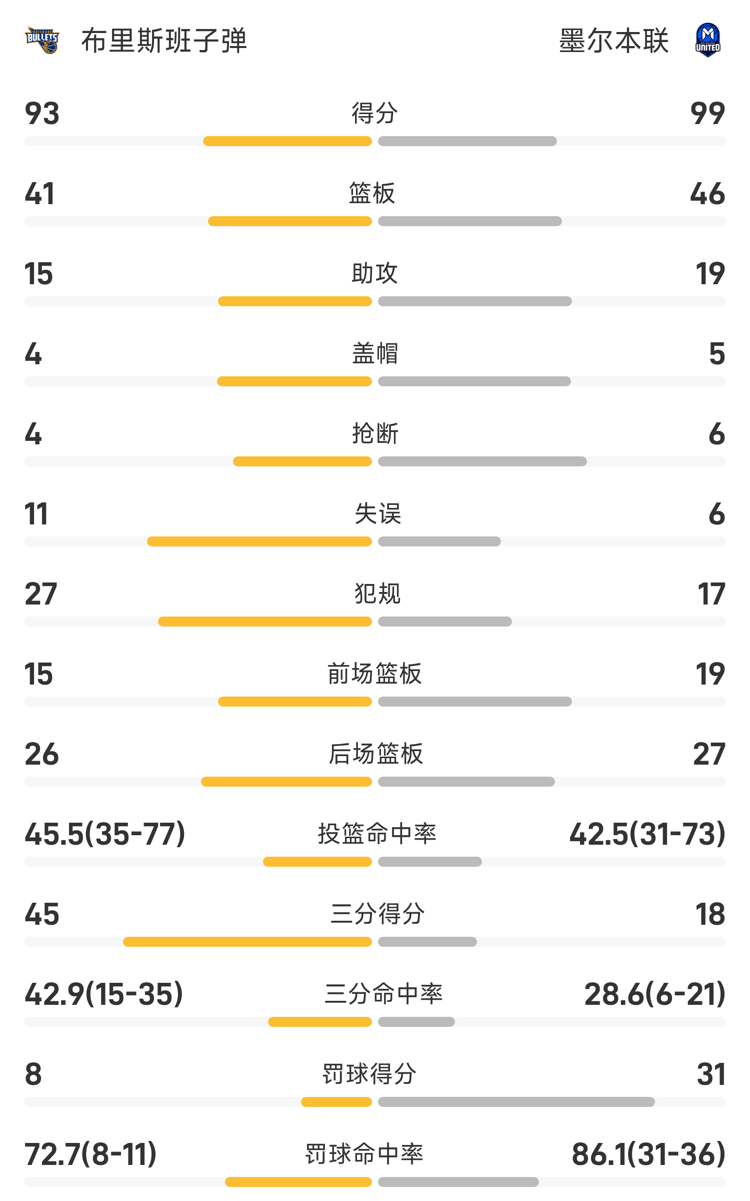 En fin de match, Melbourne United a battu les Brisbane Bullets 99-93.
