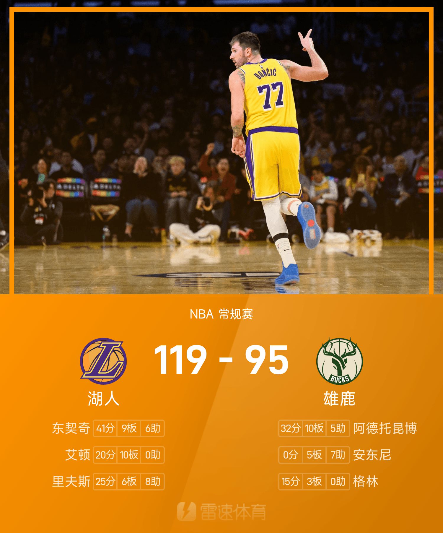 Doncic a marqué un record de 41 points, 9 rebonds et 6 passes décisives, menant les Lakers à la victoire. Antetokounmpo a marqué 32+10 en vain.