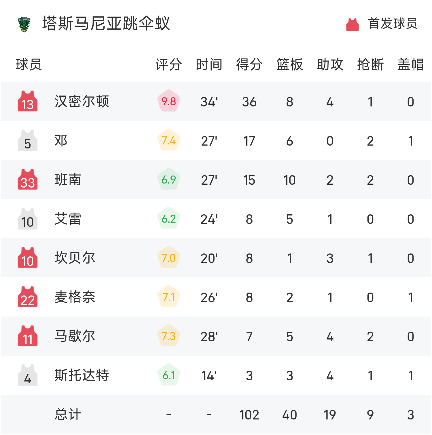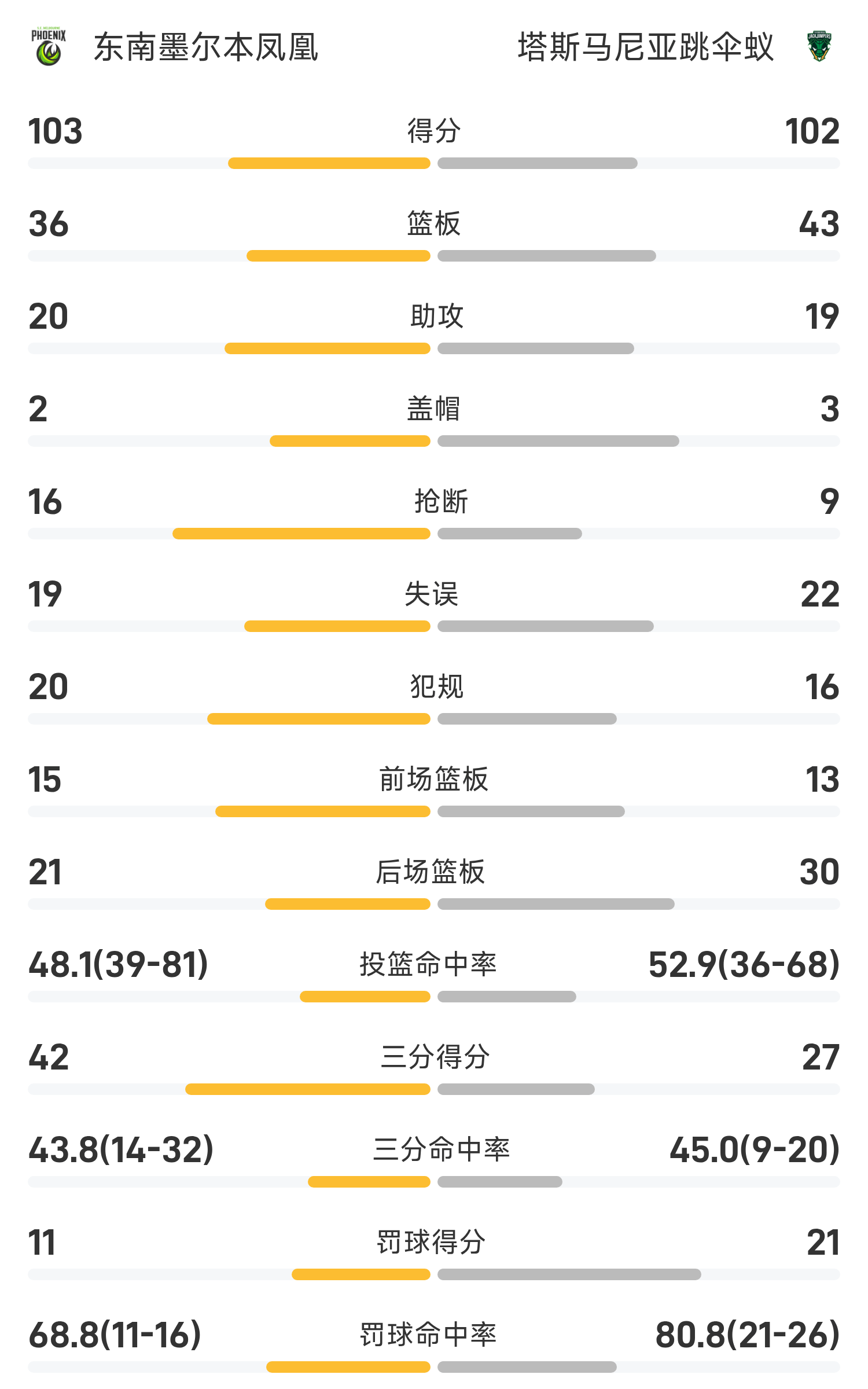 6686 Sports Actualités du 06 novembre Au cours de la saison régulière 25/26 de la NBL, les Tasmanian Parachuting Ants ont joué contre le Southeast Melbourne Phoenix. En fin de match, les Tasmanian Skydiving Ants ont perdu contre le Southeast Melbourne Phoenix 102-103. Soapy a marqué 28 points, 3 rebonds et 4 passes décisives pour mener l'équipe à la victoire. Hamilton a marqué un record de 36 points, 8 rebonds et 4 passes décisives.