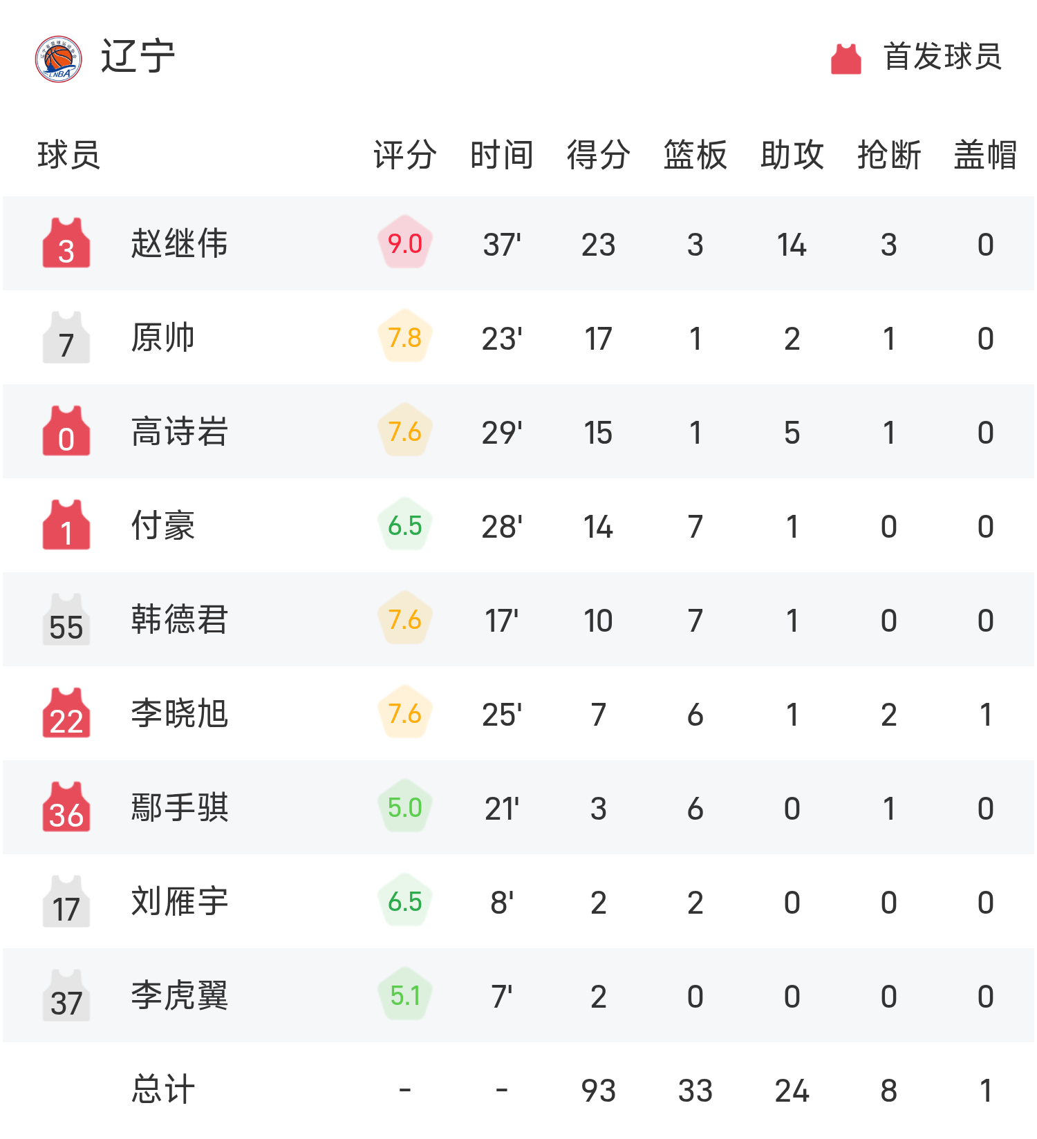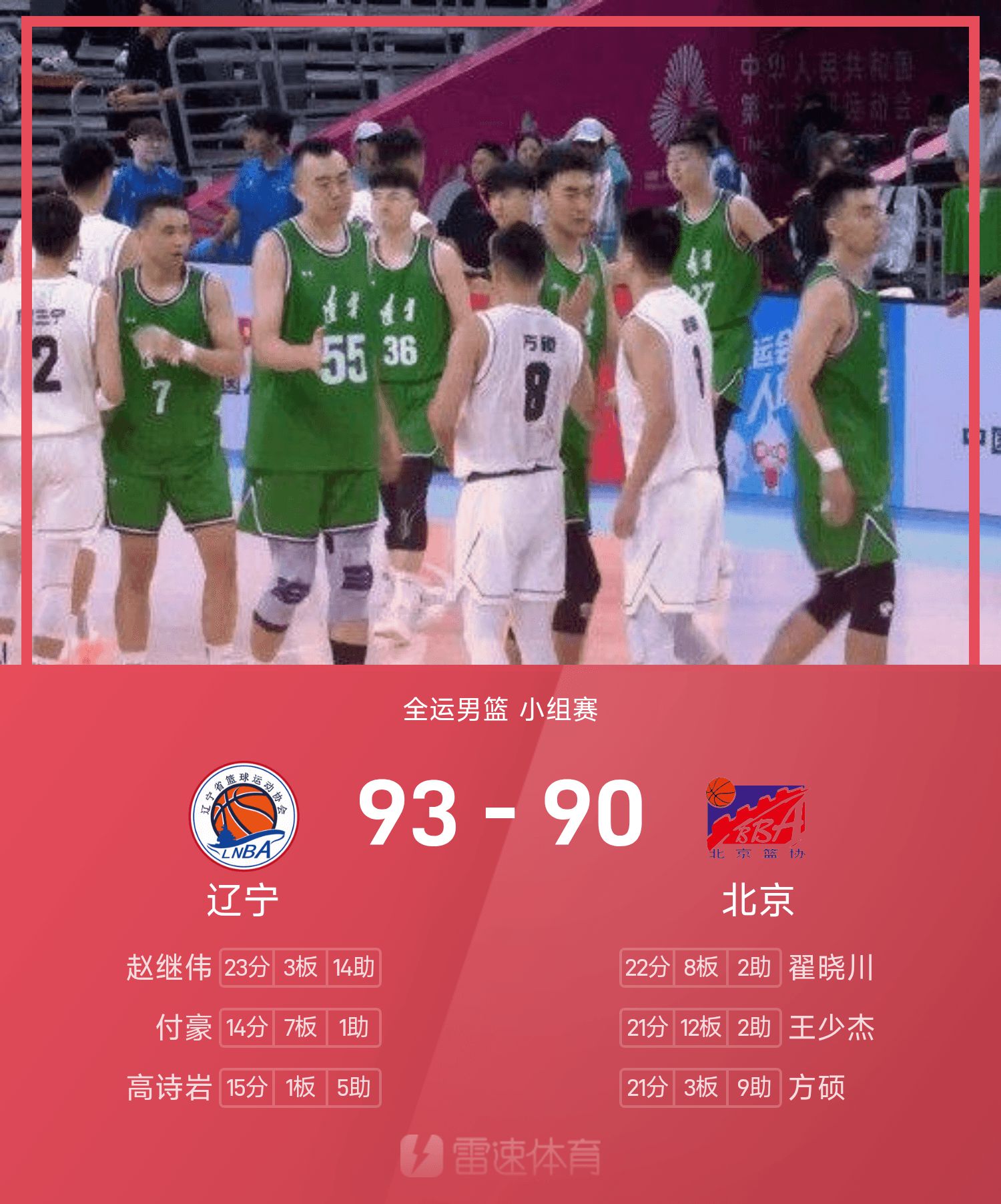 Rapport du match de basket-ball masculin des Jeux nationaux: Zhao Jiwei 23 points et 14 passes décisives, le Liaoning a battu de peu Pékin 93-90