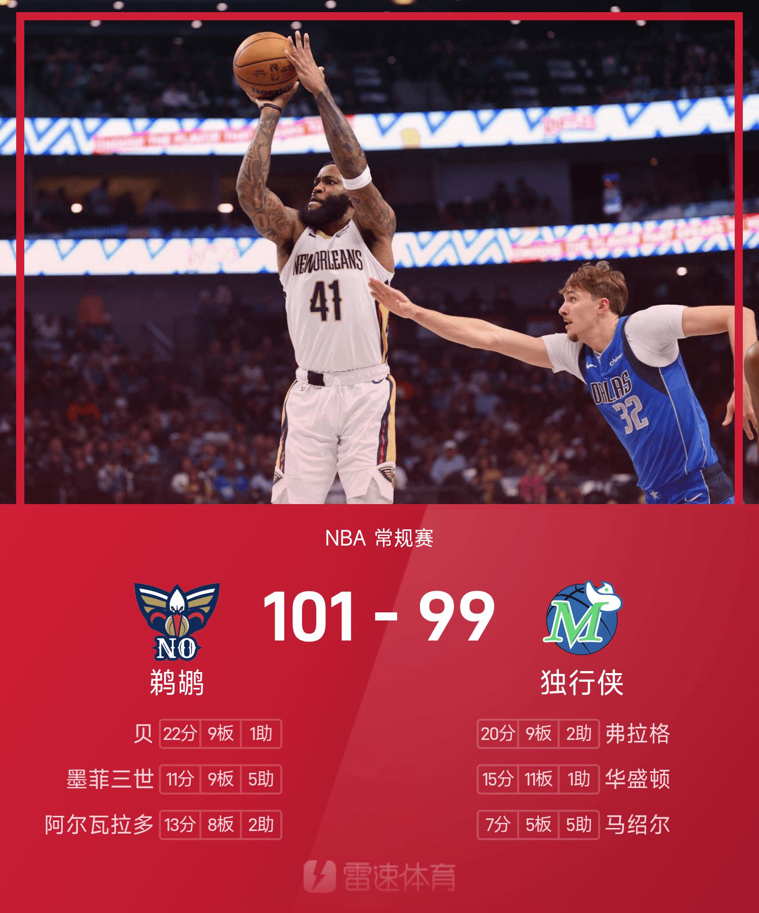 Pélicans 101-99 Mavericks
