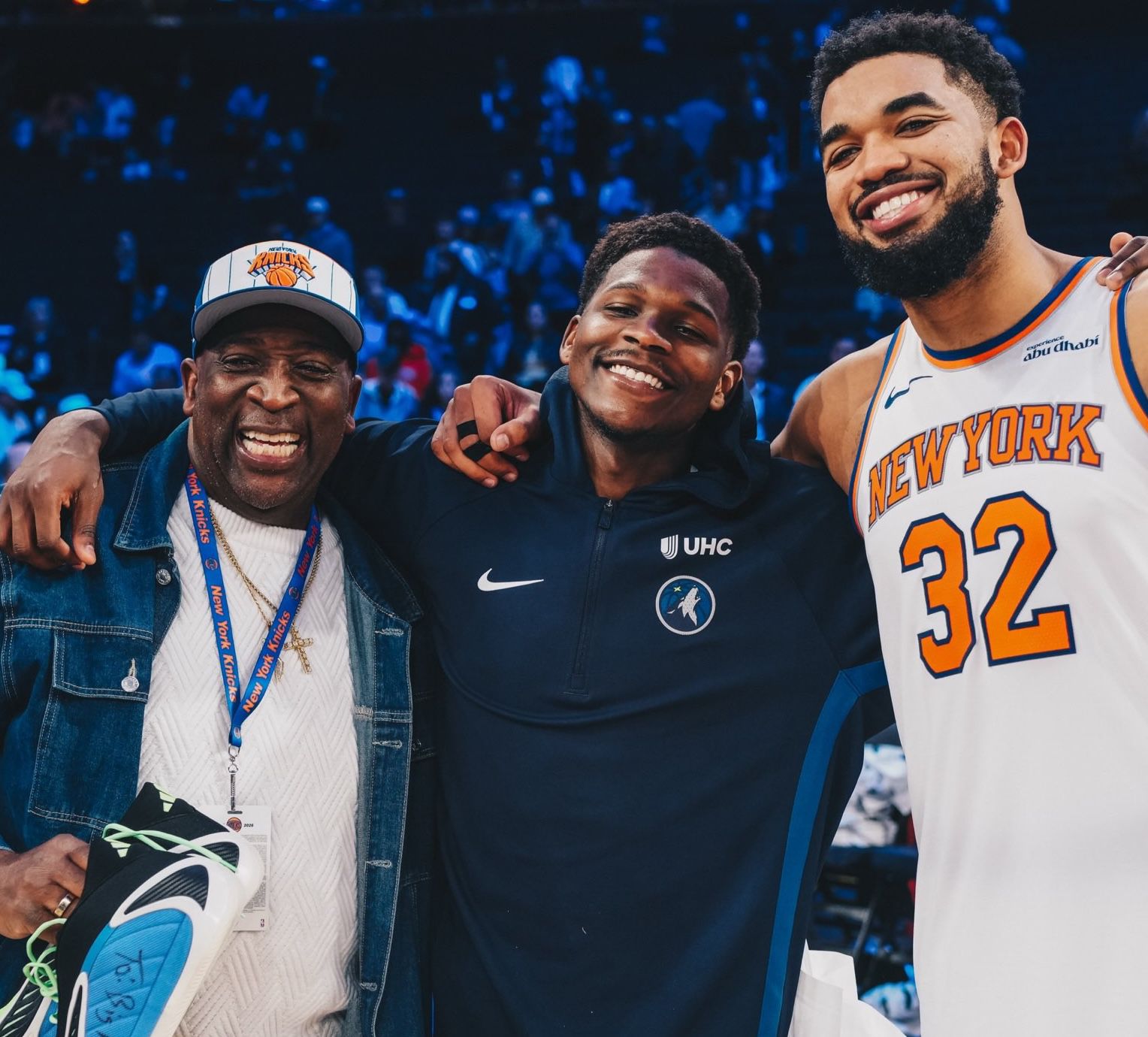 Après le match, Edwards a pris une photo de groupe avec Towns et son père. Edwards a également donné au père de Towns ses propres chaussures de basket signées.