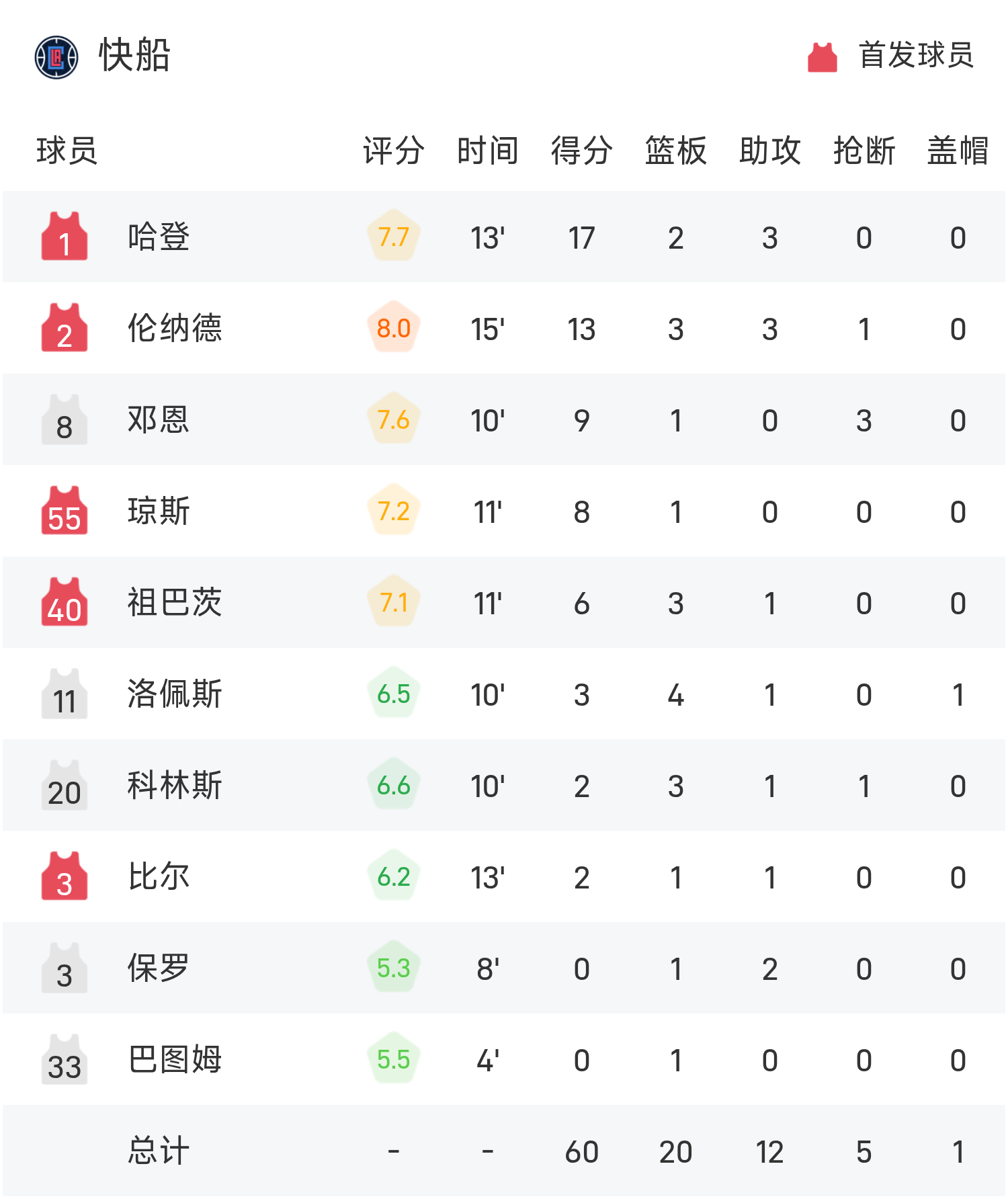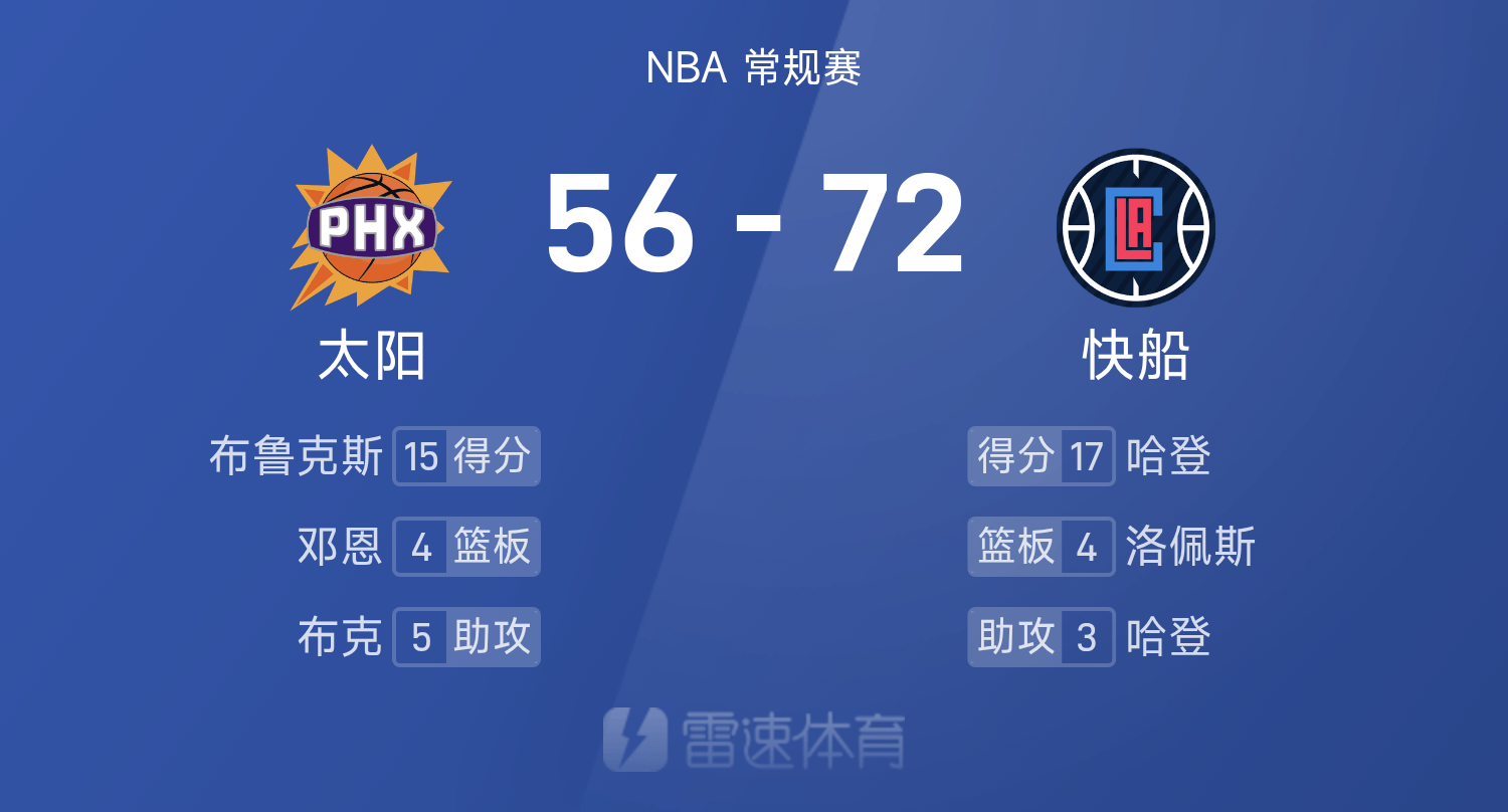 Harden a réussi 5 des 6 tirs à trois points et a marqué efficacement 26 points, 3 rebonds et 4 passes décisives. Booker n'a marqué que 8 points. Les Clippers 72-56 Suns à la mi-temps.
