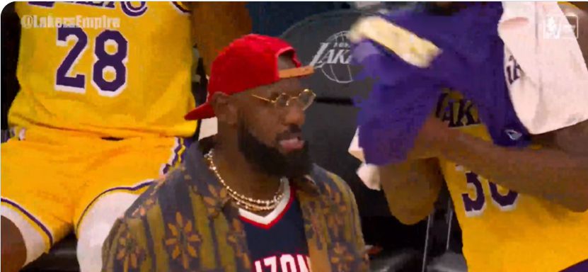Bien qu'il n'ait pas pu jouer en raison d'une blessure, LeBron a quand même communiqué et interagi activement avec ses coéquipiers sur le terrain.