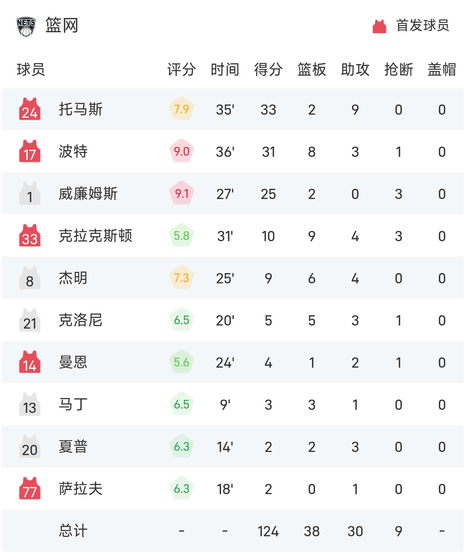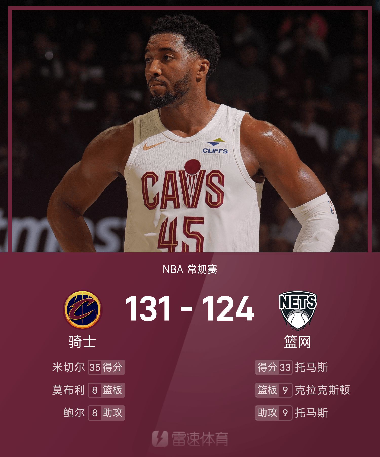 6686 Sports 25 octobre Lors de la saison régulière 25/26 de la NBA, les Nets ont joué contre les Cavaliers. En fin de match, les Nets s'inclinent face aux Cavaliers 124-131. Mitchell a marqué un record de 35 points, 2 rebonds et 5 passes décisives, menant les Cavaliers à la victoire.