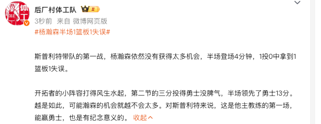 La petite formation des Trail Blazers jouait bien. Les trois points du deuxième quart-temps ont fait perdre leur sang-froid aux Warriors. Ils menaient les Warriors de 13 points à la mi-temps. Plus c’est le cas, moins Hexion peut avoir d’opportunités. Pour Split, c'est son premier match en tant qu'entraîneur, et c'est aussi mémorable de gagner contre les Warriors.