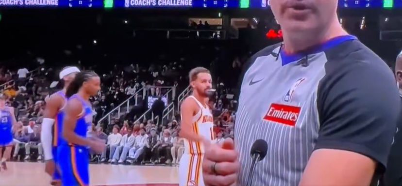 Vous n'avez pas peur des amendes ? Trae Young a fait un geste du pouce vers le bas derrière l'arbitre pour exprimer son mécontentement
