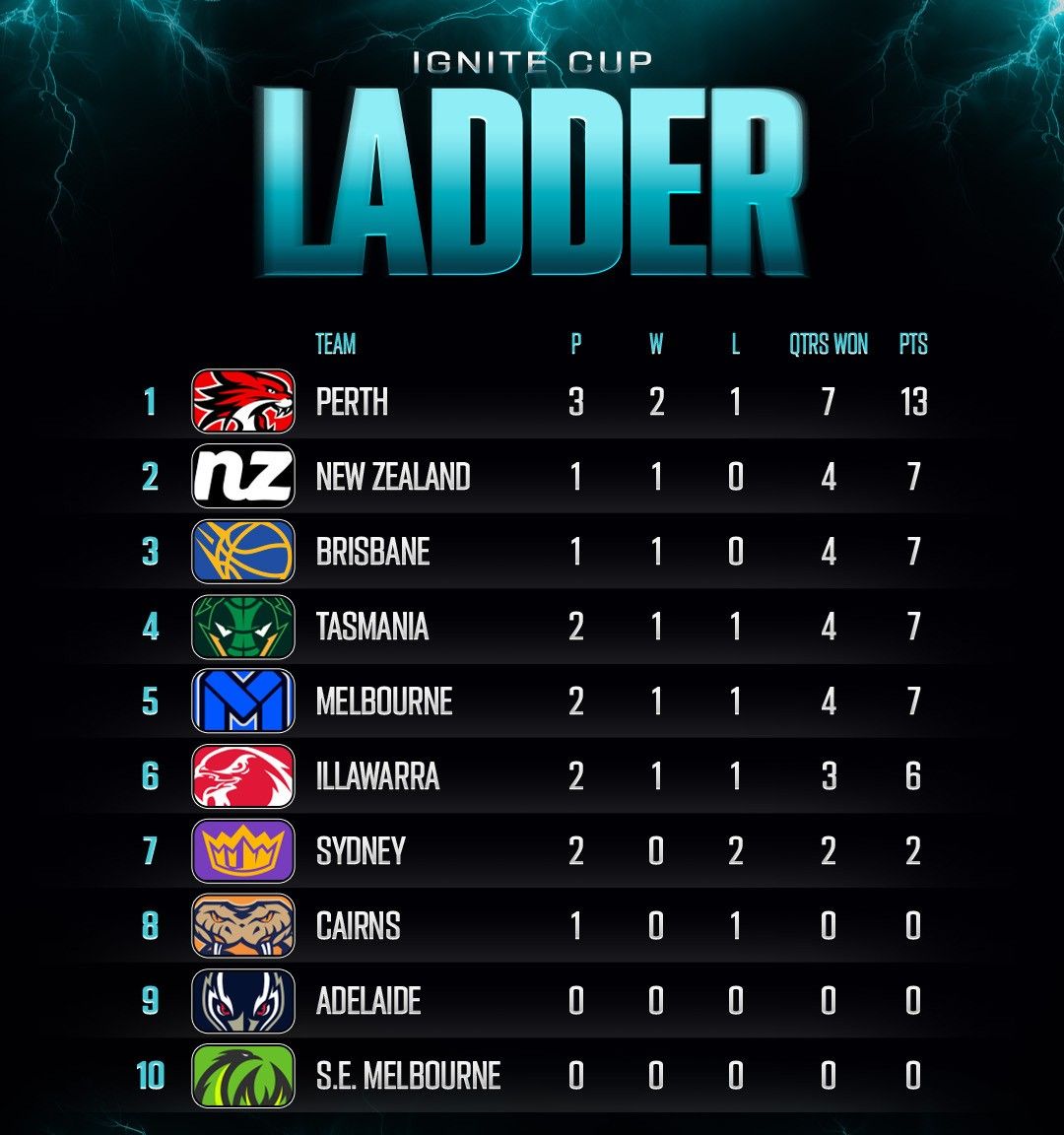 L'Ignite Cup adopte le premier nouveau système de points d'échelle au monde, rendant la compétition plus excitante. L'équipe qui gagne chaque match recevra 3 points, et l'équipe qui gagne chaque quart recevra également 1 point. Si deux équipes obtiennent le même score au cours d'un même quart-temps, chaque équipe recevra 0,5 point. "
